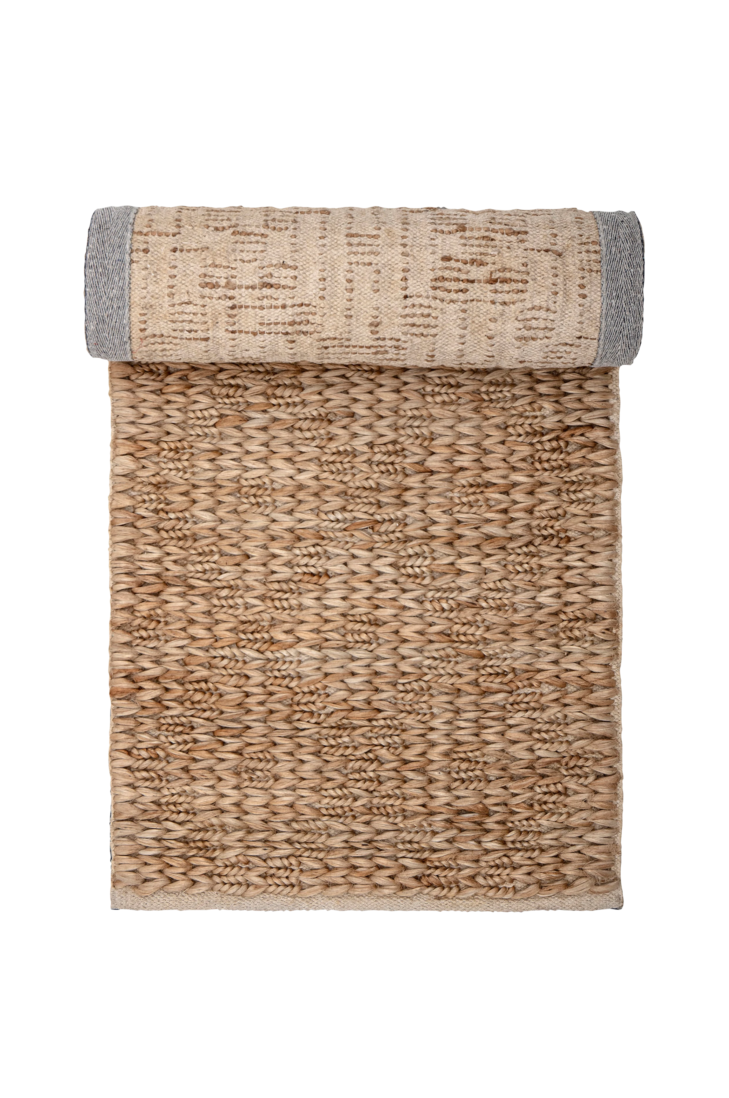 Matta av jute med stickat mönster och tyg i kanterna – passar perfekt i alla rum.