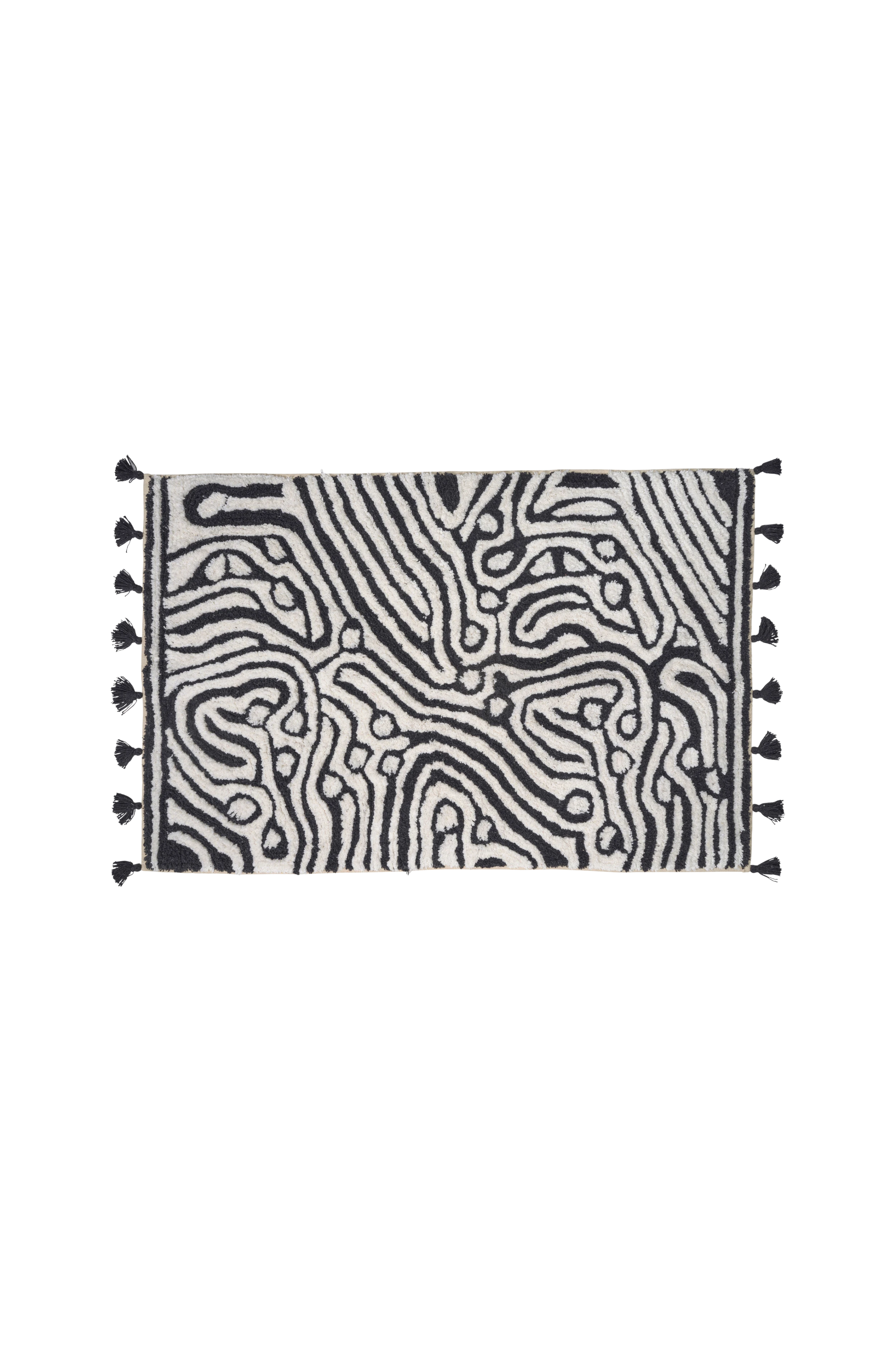 Badrumsmatta Maze Àr en vÀvd matta med tofsar pÄ kortsidorna. Bomullen Àr mjuk och skön att sÀtta fötterna pÄ. Badrumsmattan Àr en stilig detalj som livar upp badrumsgolvet.
