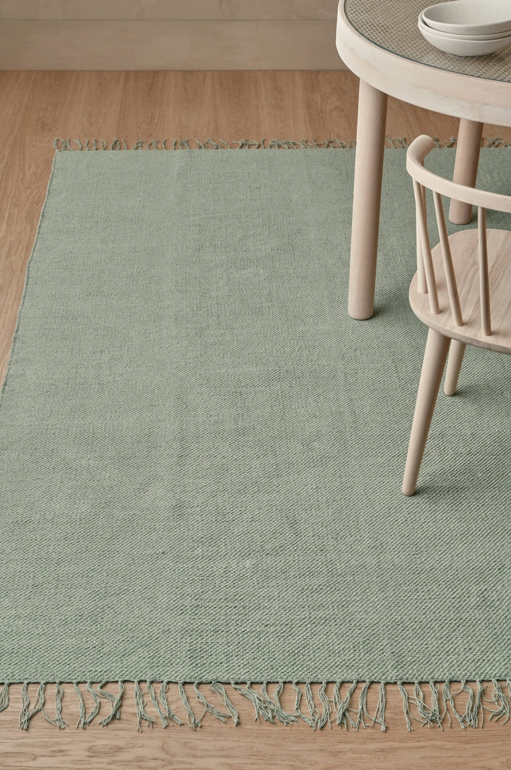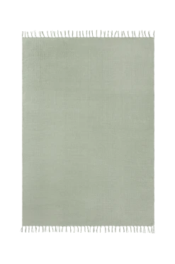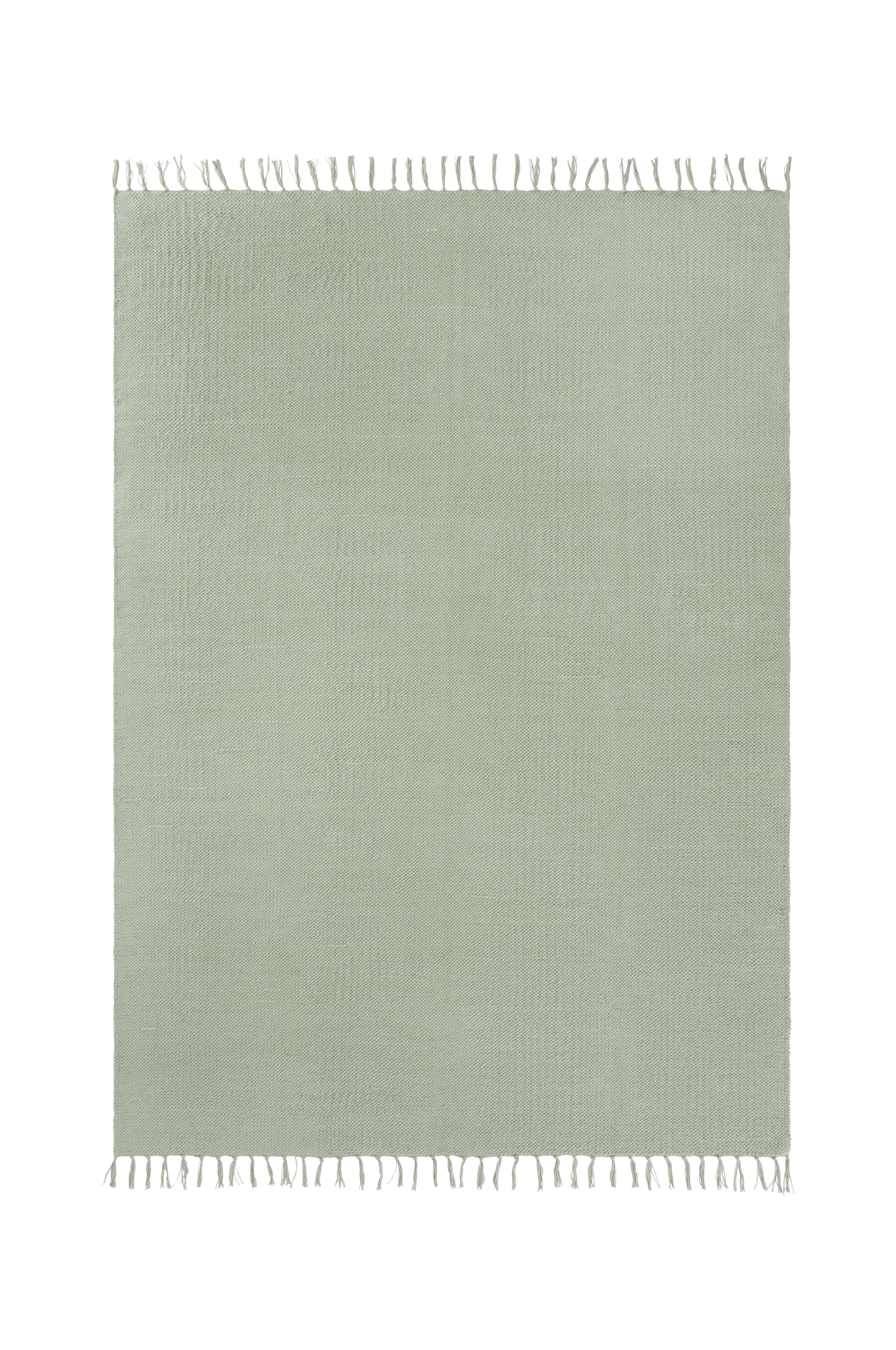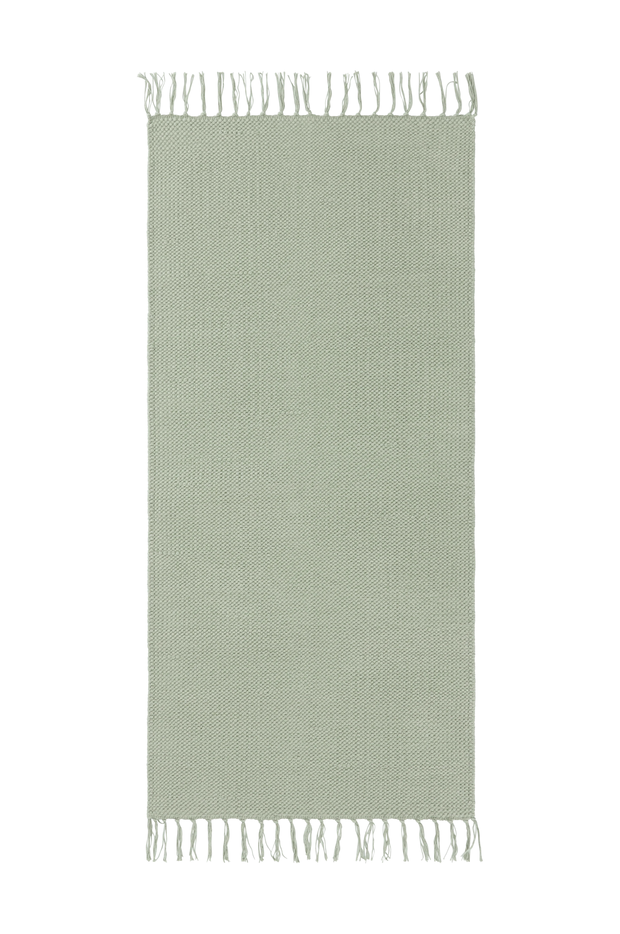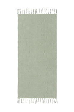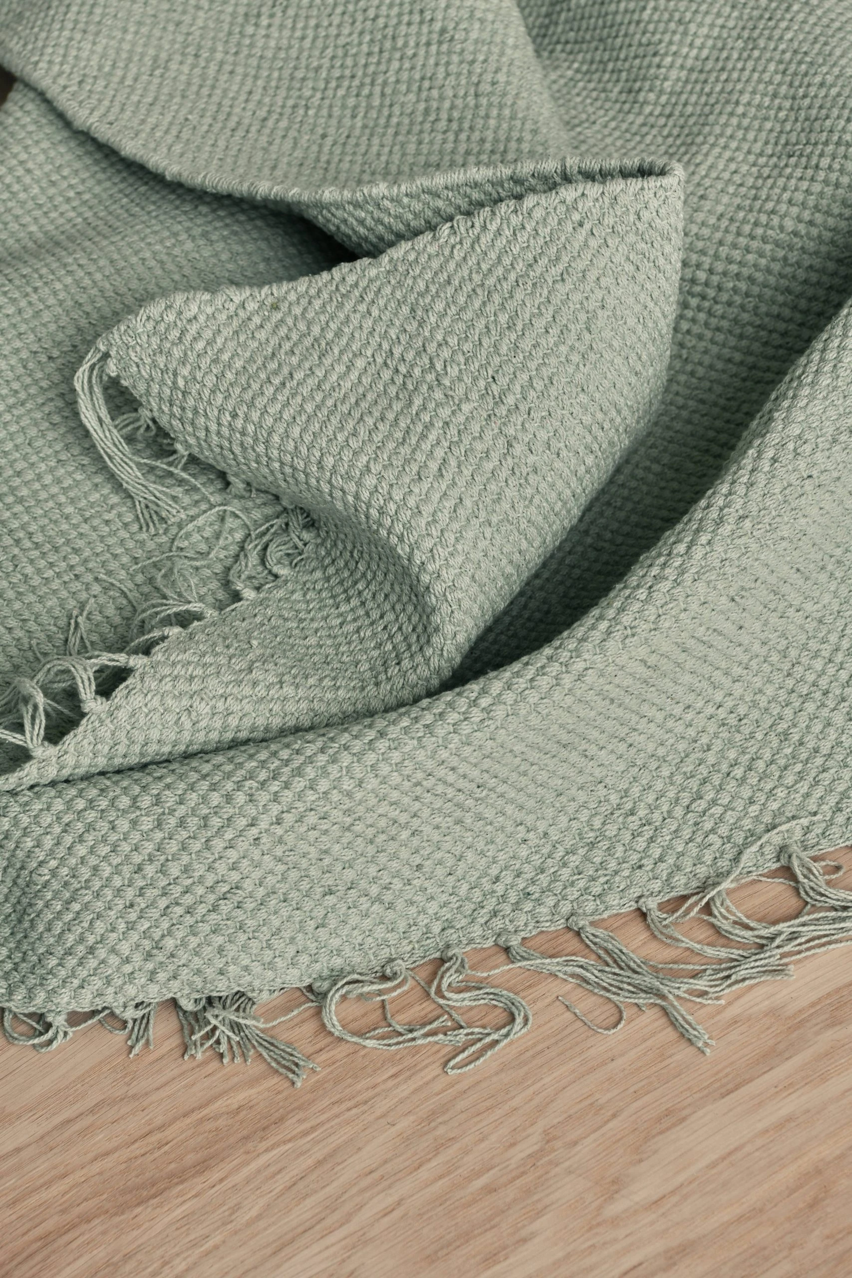 SlÀtvÀvd bomullsmatta med fÀrgade fransar. Höjd 0,5 cm.