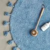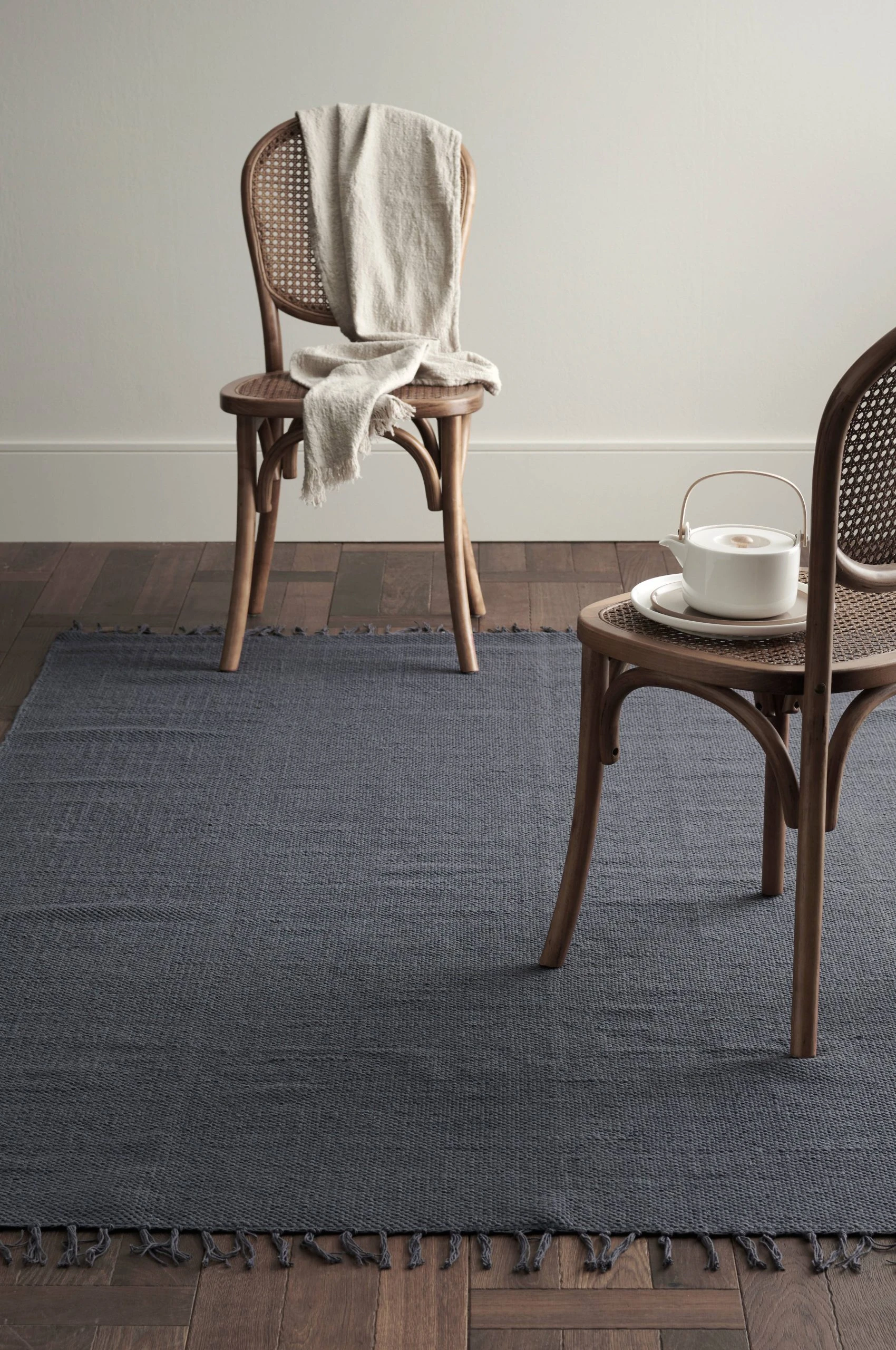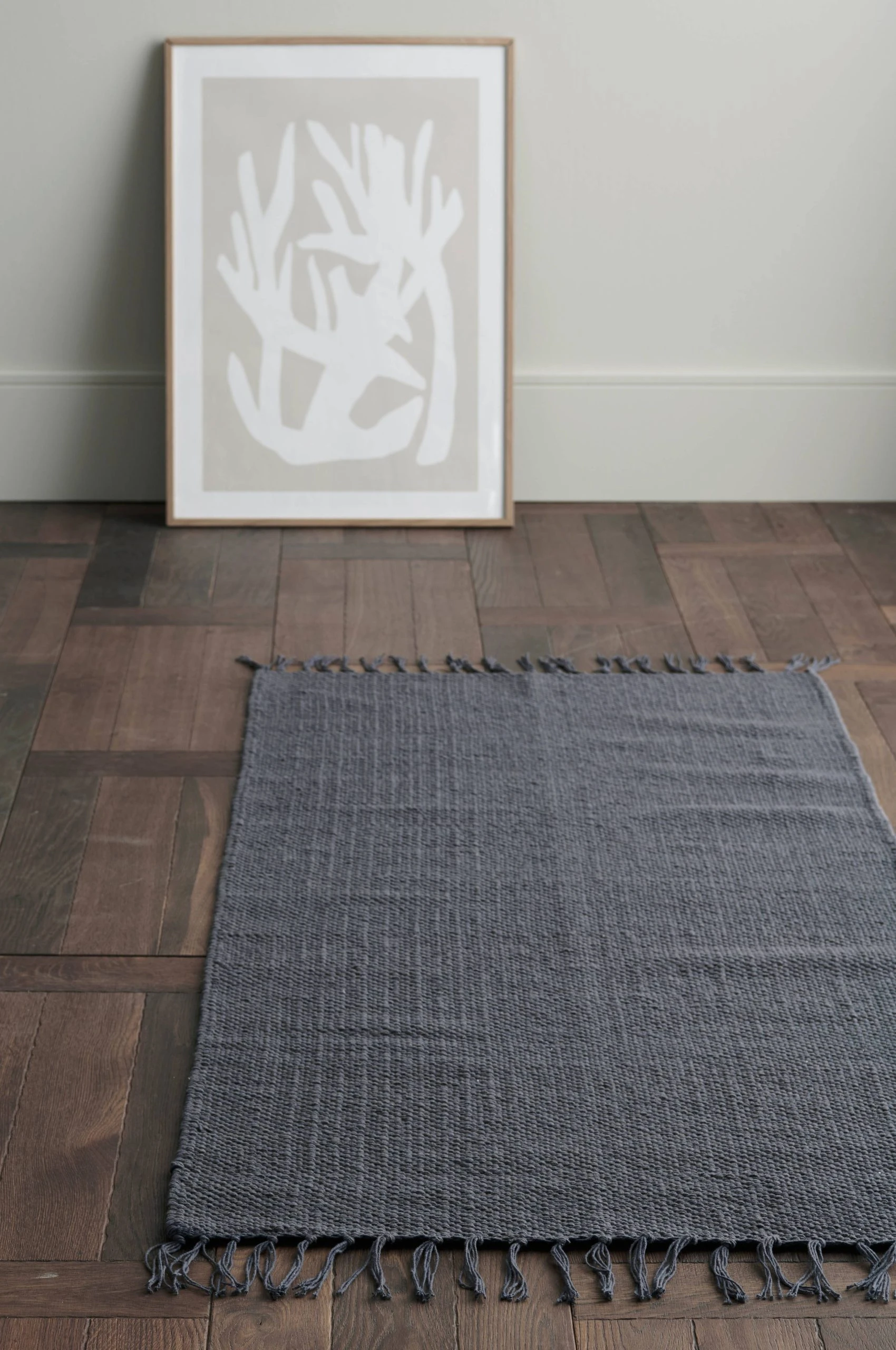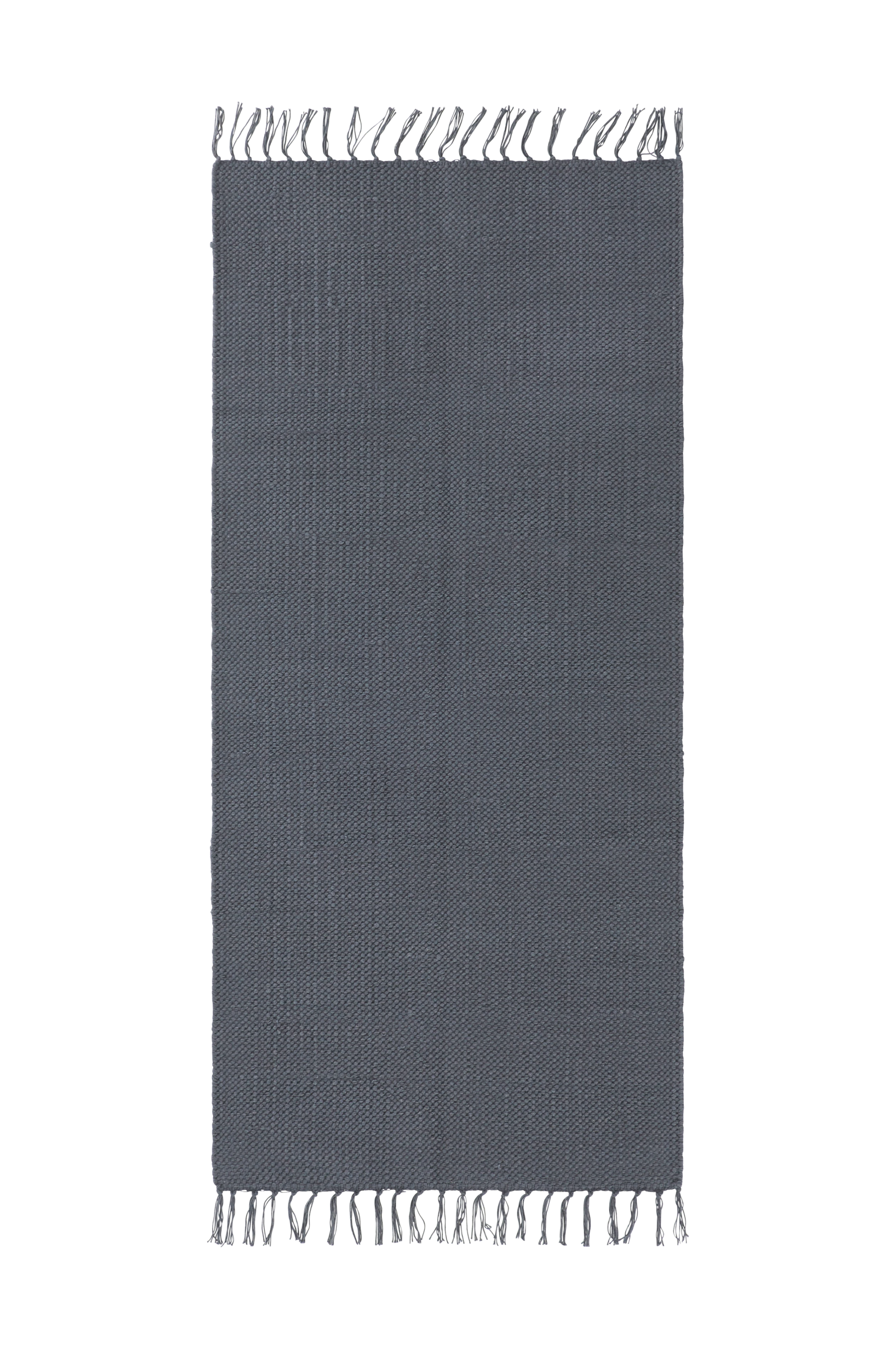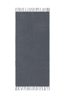 SlÀtvÀvd bomullsmatta med fÀrgade fransar. Höjd 0,5 cm.