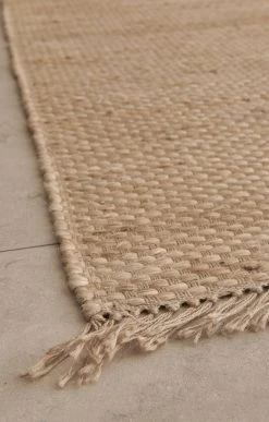 VÀvd matta i naturfÀrgad jute med flÀtat mönster och fransar. Höjd ca 1 cm. SkötselrÄd: Dammsugning och flÀckborttagning. För att jÀmna ut fransarna, fukta dem lÀtt och platta till dem.