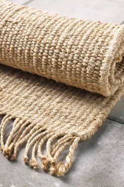 Matta av jute med fina, lÄnga fransar, en perfekt matta för uterummet, balkongen eller altanen.