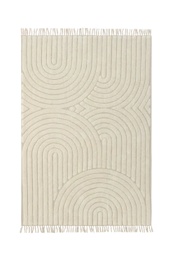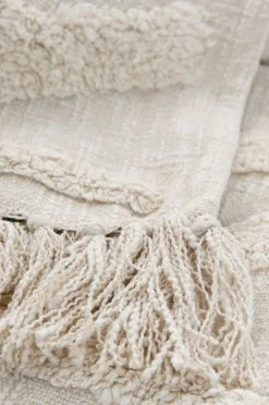 Pläd i lite grövre bomullskvalitet med struktur och tuftat mönster på framsidan. Fransar på kortsidorna. Stl 130×170 cm + 8 cm frans.
