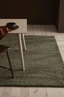 Tuftad ryamatta med tÀt, tjock och mjuk lugg. Randig struktur. Lugghöjd ca 2 cm.