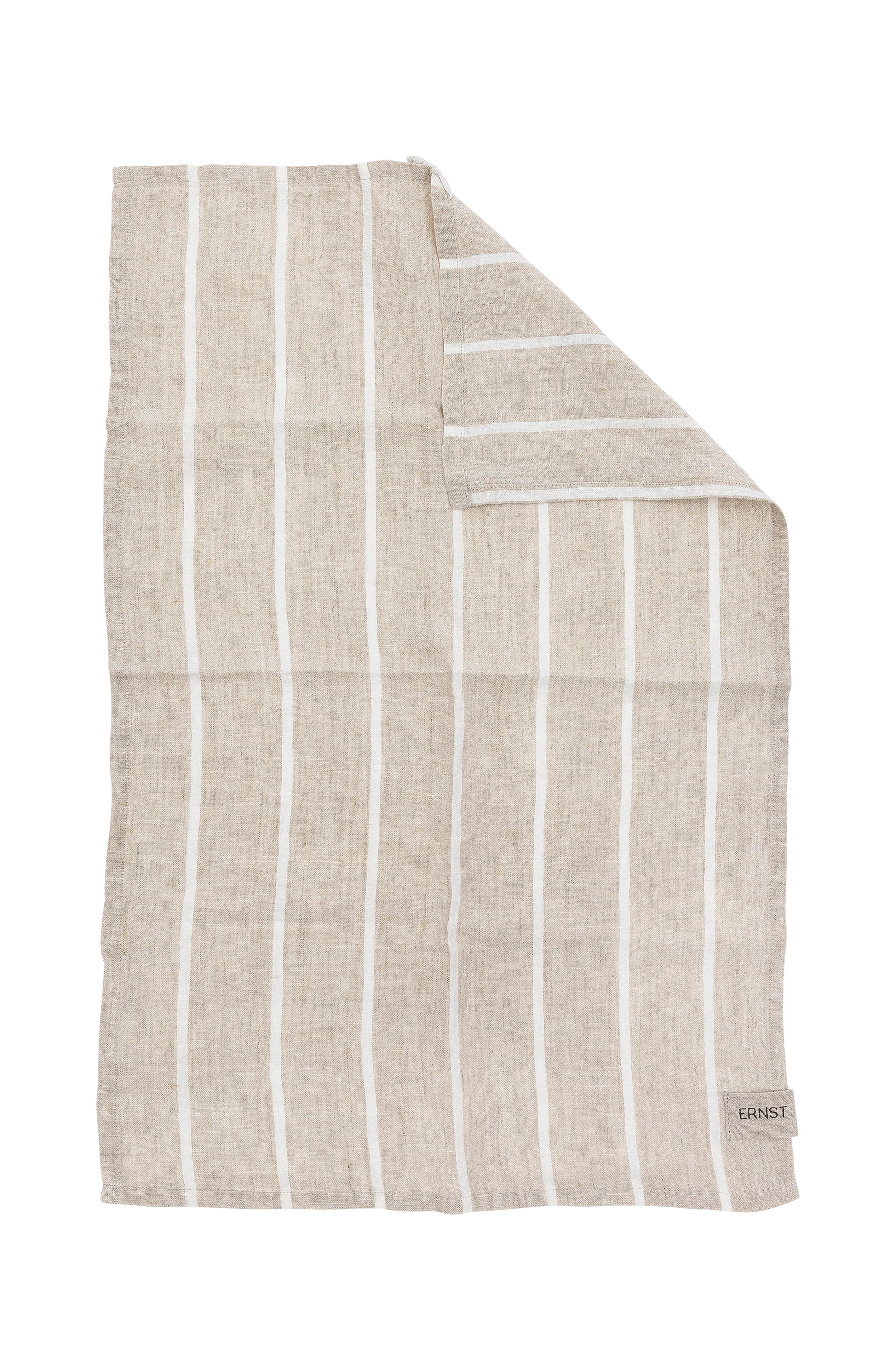 Finns det någon vackrare köksdetalj än en handduk i linne. Linnefärgad med fina ränder.