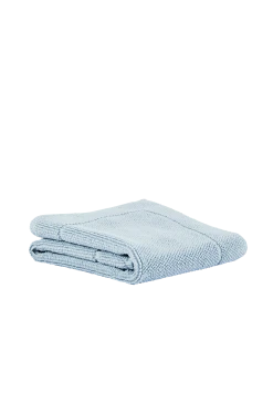 Badrumsmatta i stentvĂ€ttad bomullsfrottĂ© med invĂ€vd bĂ„rd i en ram. Ăko-Tex Standard 100