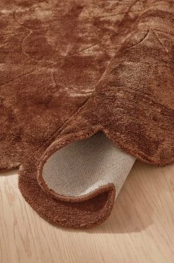 Handtuftad matta i viskos med reliefmönster. Höjd 1 cm.
